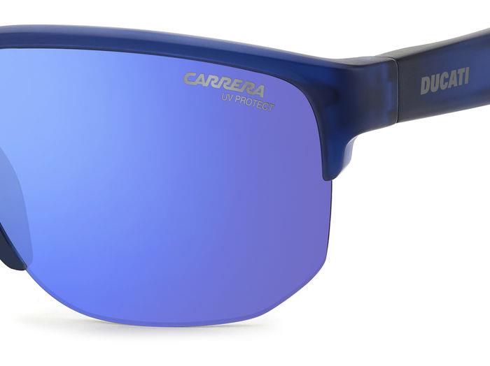Questo modello blu unico nel suo genere, impeccabile e audace con le lenti sono progettate e prodotte da Carrera e Ducati in collaborazione con il produttore italiano Safilo .