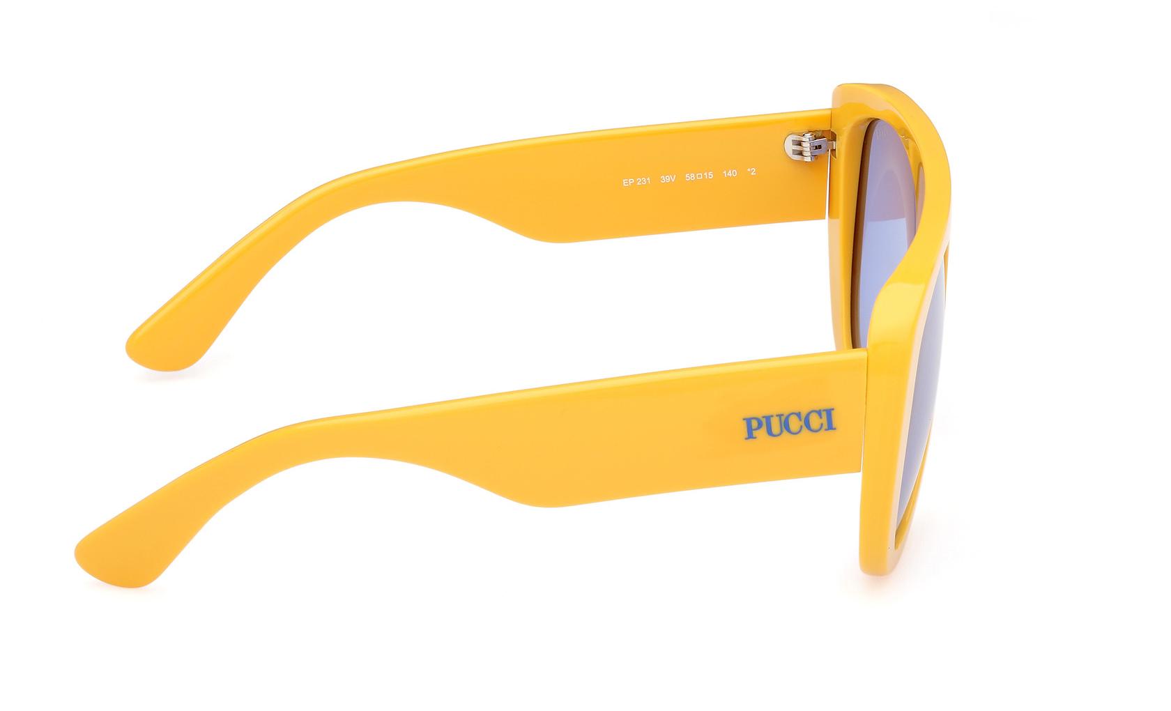 This distinct Shiny Dark Yellow model exemplifies Pucci's commitment to fusing iconic patterns with contemporary silhouettes. Crafted from high-quality materials and featuring signature prints or vibrant colorways, these sunglasses offer both durability and a touch of flamboyant flair.