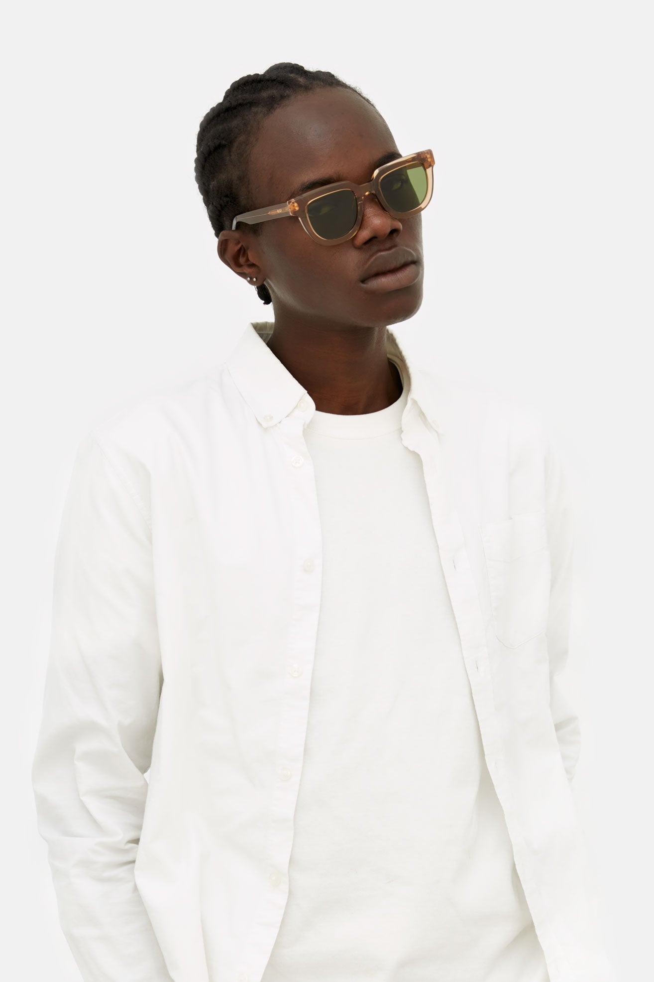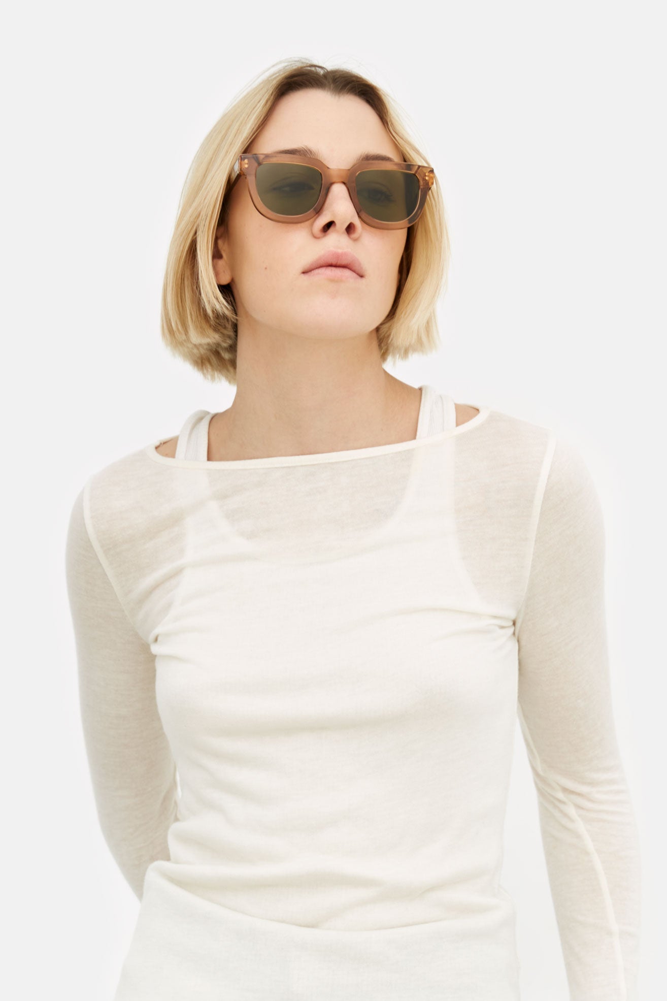 The shade intensity results from an artisanal process that makes every lens unique; even the darkest tint may not guarantee complete coverage of the eyes when viewed from the outside.