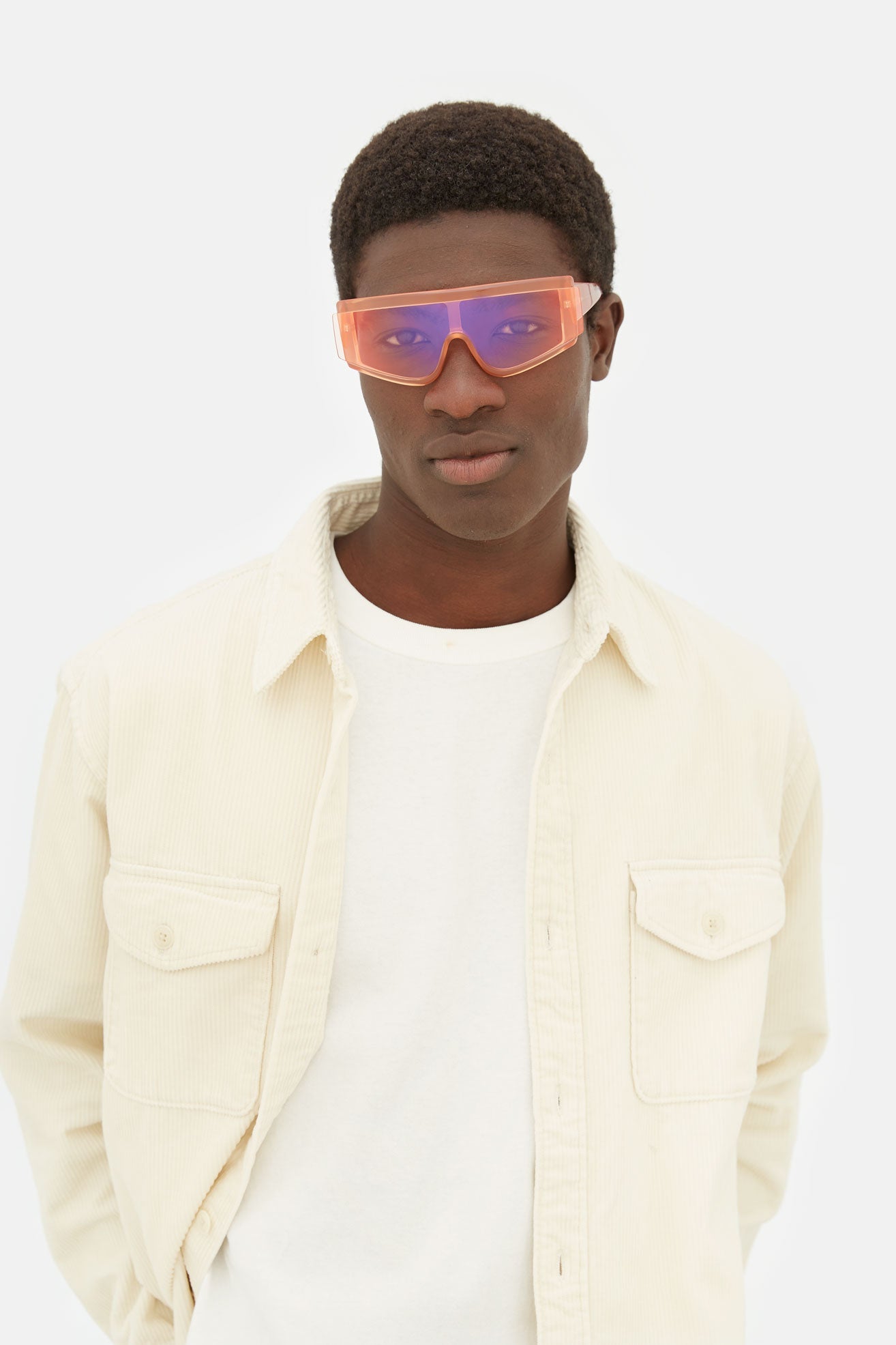 The shade intensity results from an artisanal process that makes every lens unique; even the darkest tint may not guarantee complete coverage of the eyes when viewed from the outside.