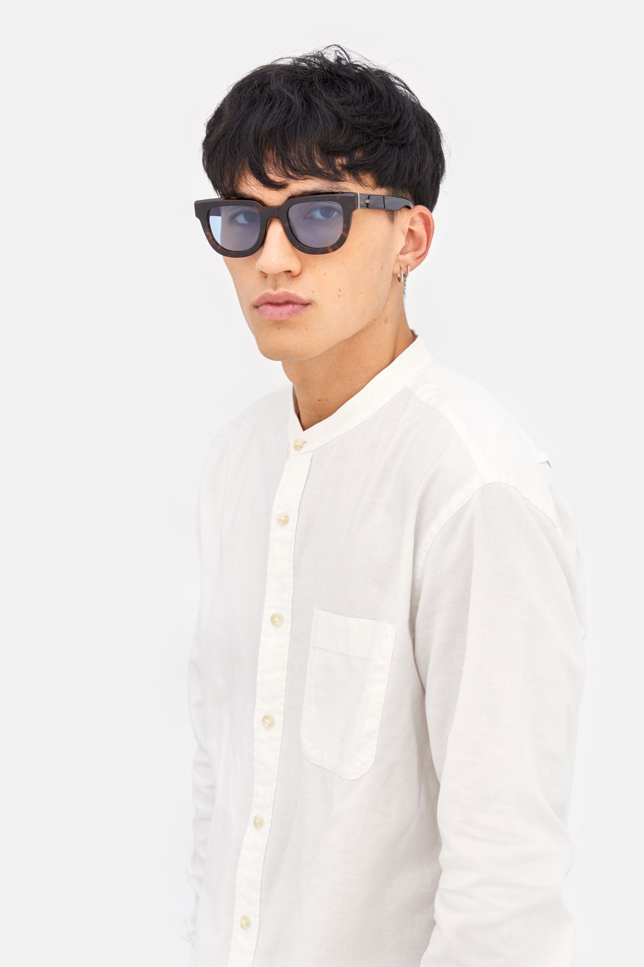 The shade intensity results from an artisanal process that makes every lens unique; even the darkest tint may not guarantee complete coverage of the eyes when viewed from the outside.