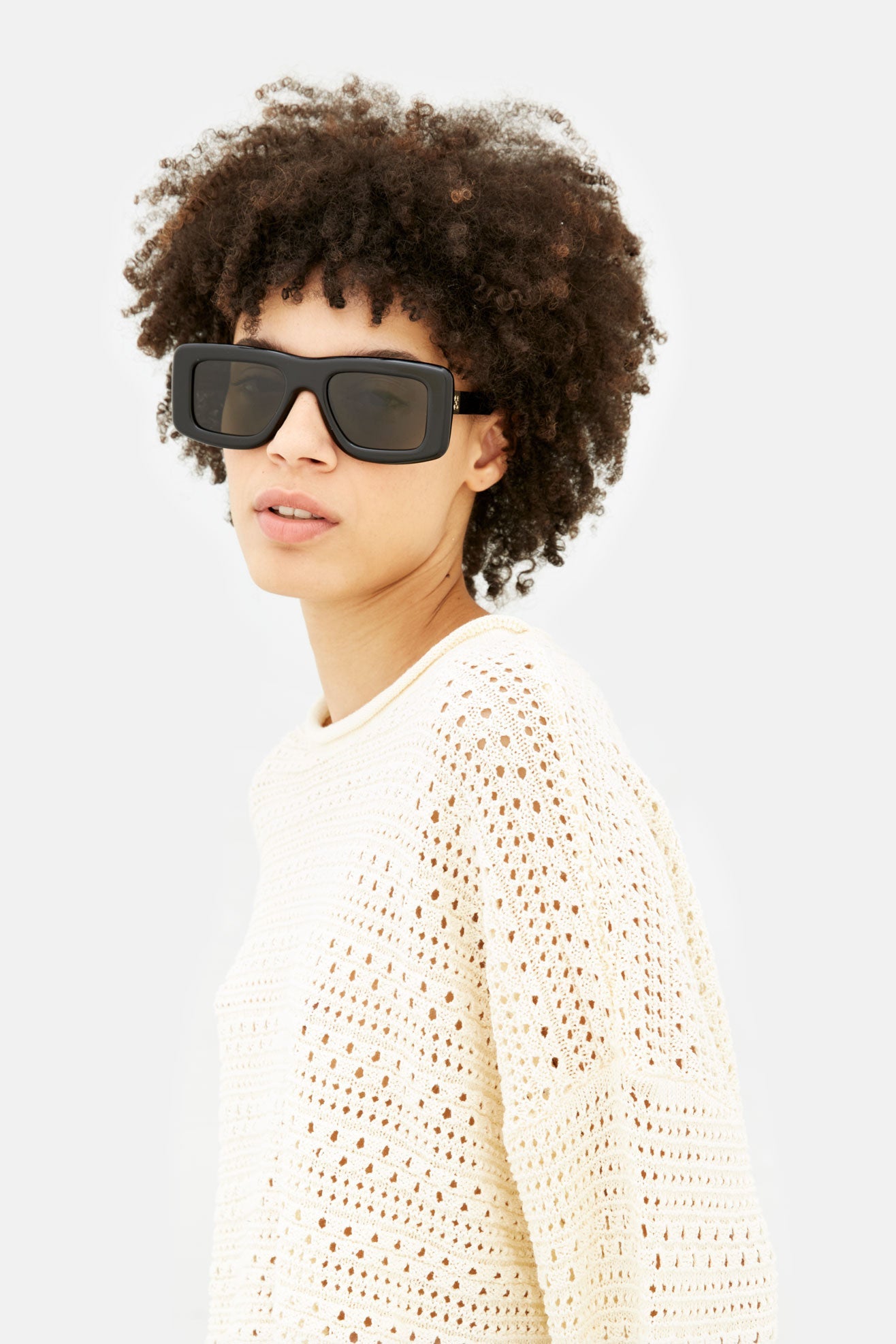 The shade intensity results from an artisanal process that makes every lens unique; even the darkest tint may not guarantee complete coverage of the eyes when viewed from the outside.