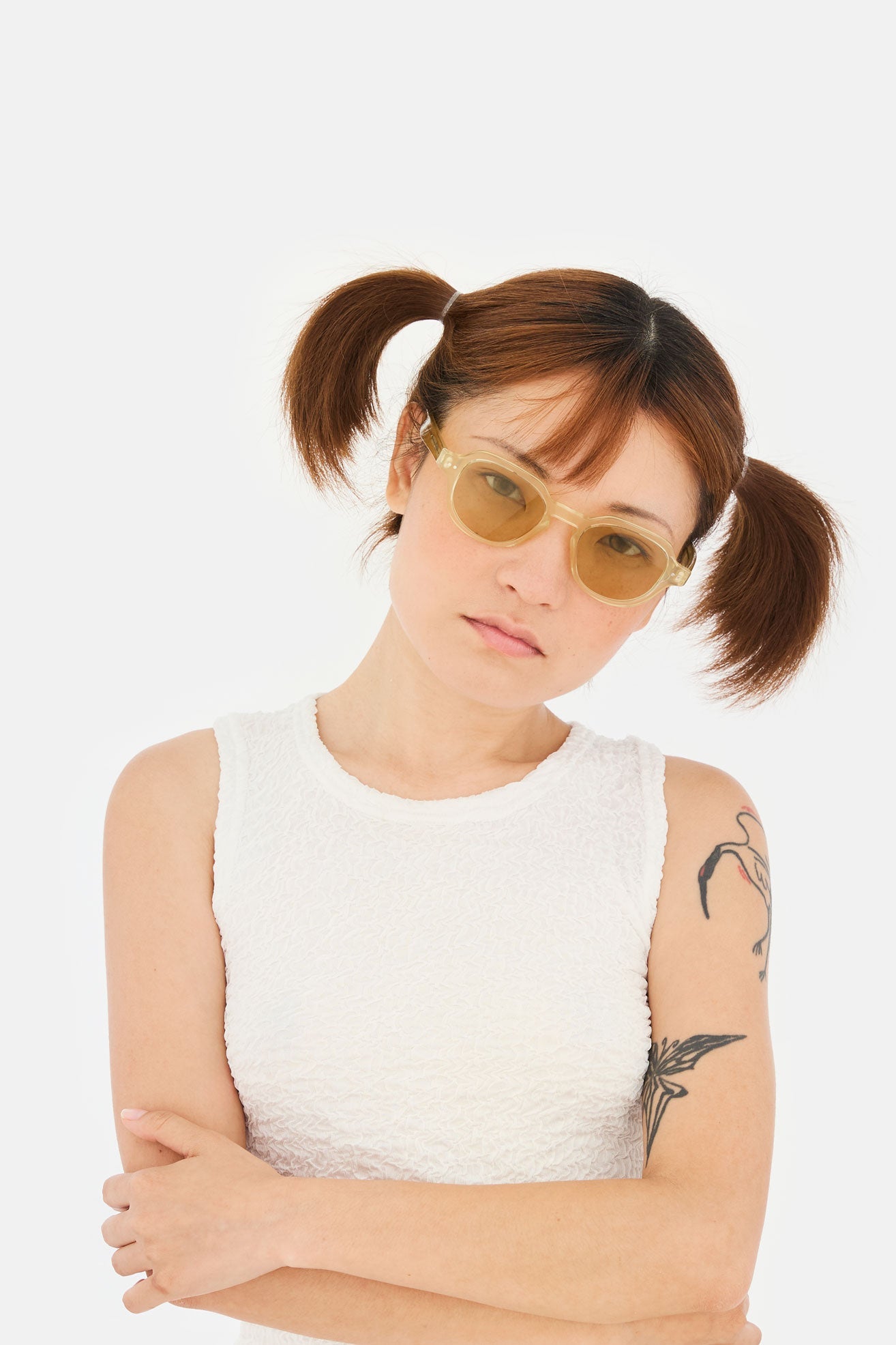 The shade intensity results from an artisanal process that makes every lens unique; even the darkest tint may not guarantee complete coverage of the eyes when viewed from the outside.