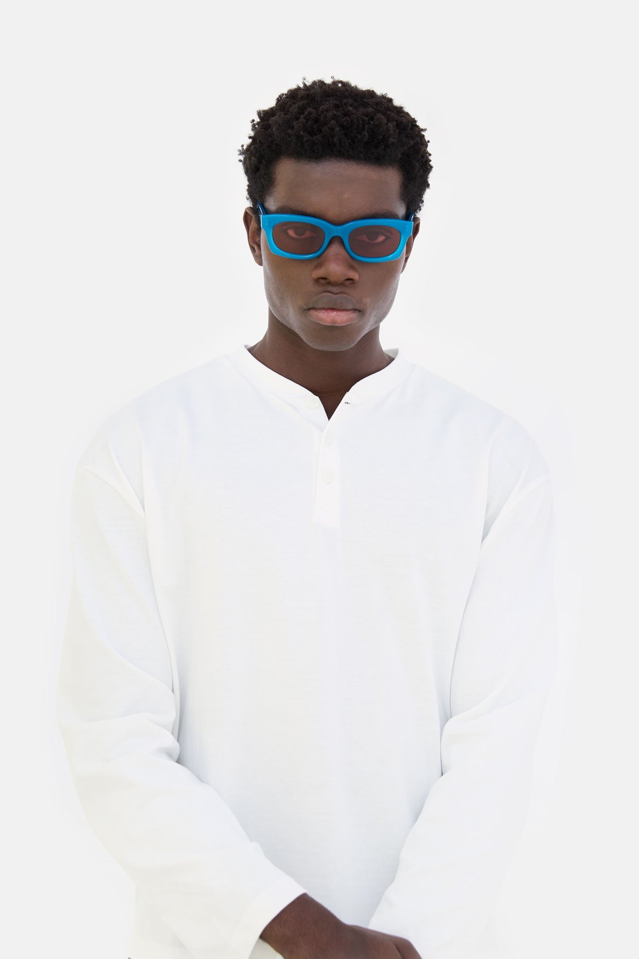 The shade intensity results from an artisanal process that makes every lens unique; even the darkest tint may not guarantee complete coverage of the eyes when viewed from the outside.