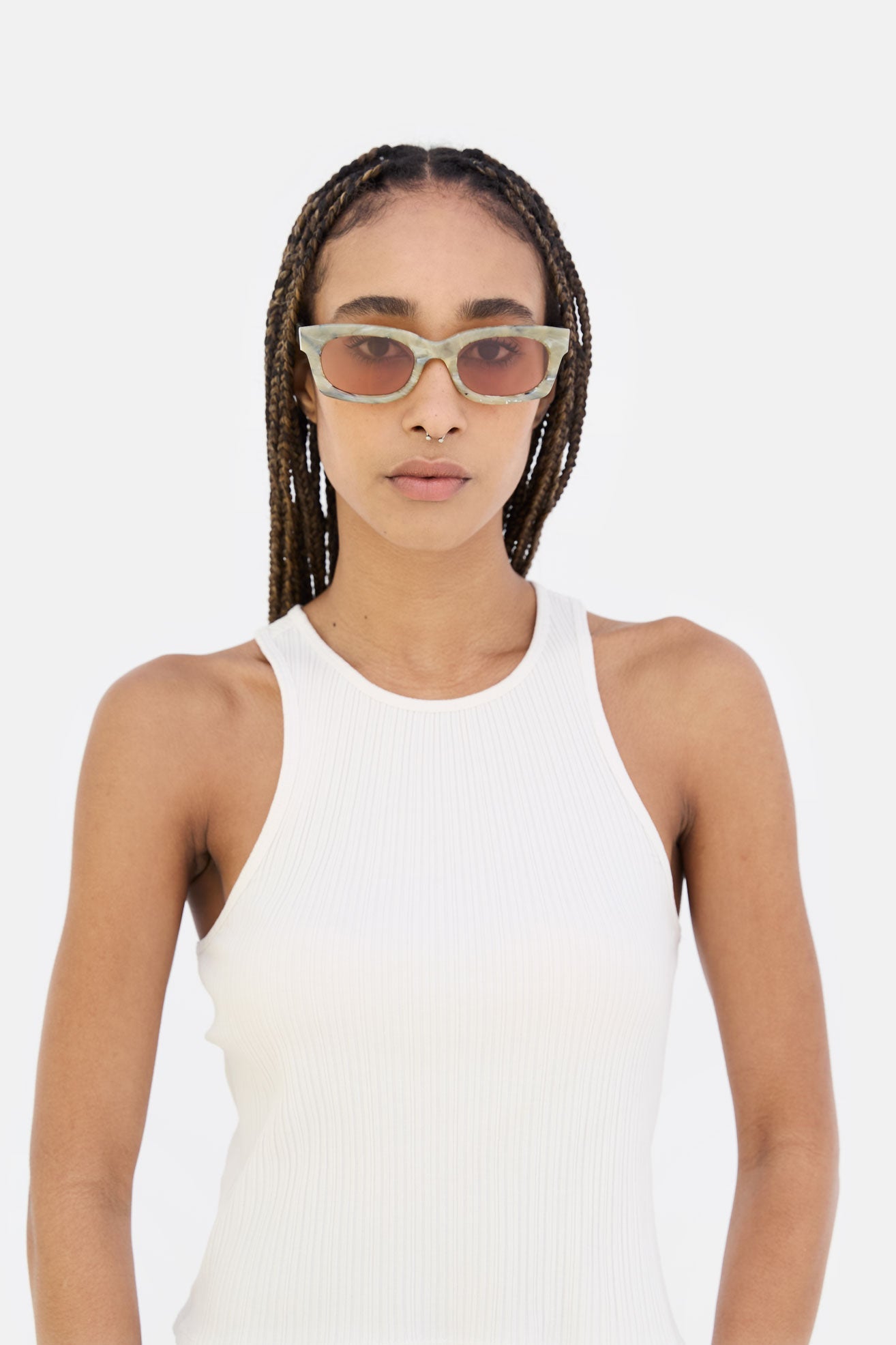 The shade intensity results from an artisanal process that makes every lens unique; even the darkest tint may not guarantee complete coverage of the eyes when viewed from the outside.